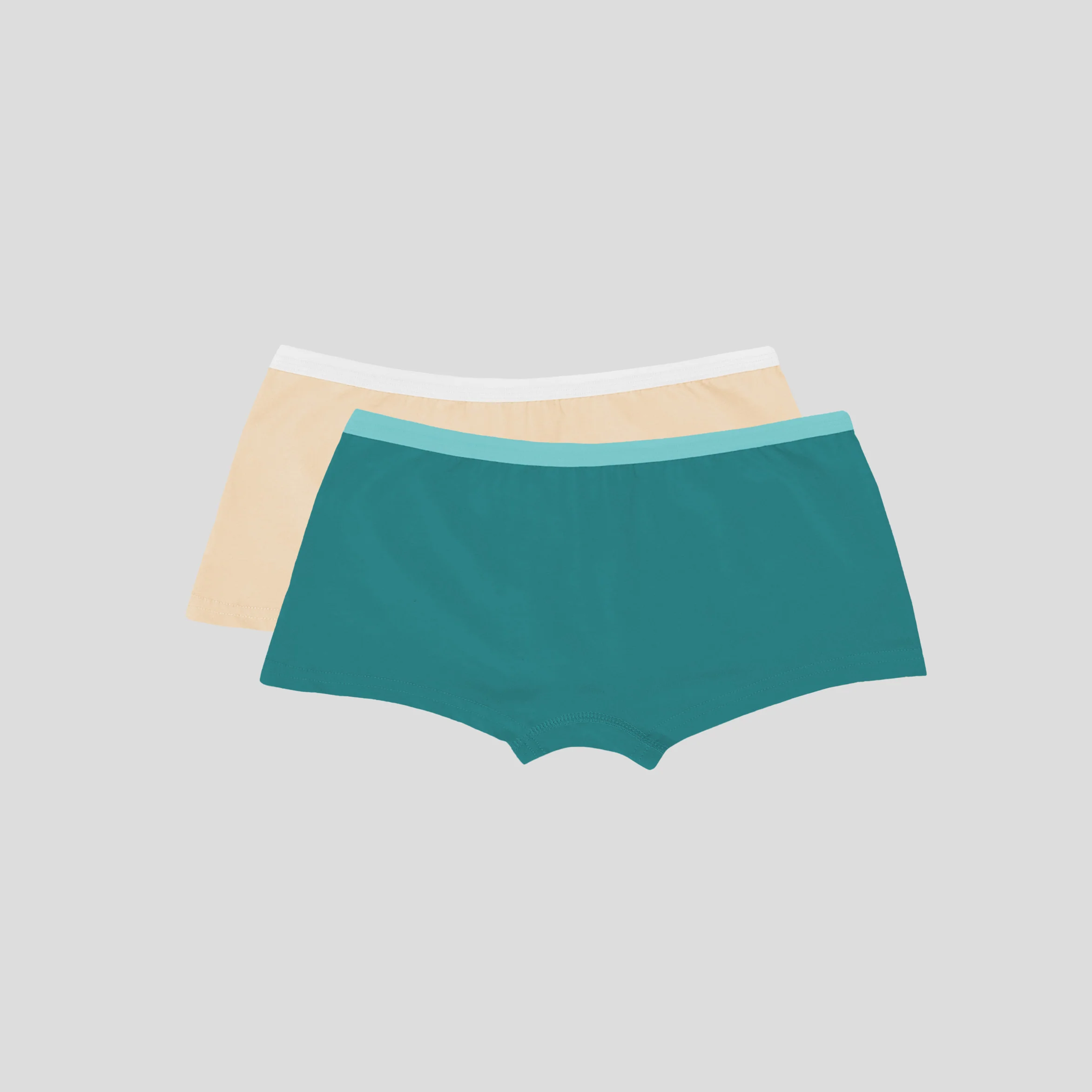 شورت قصير نسائي - عبوة من قطعتين، مصمم لراحة تدوم طوال اليوم، يتميز بملمس ناعم وجيد التهوية مع ملاءمة مريحة وآمنة. مصنوع من مزيج قطن مودال فاخر، يوفر هذا الشورت القصير ملمسًا ناعمًا وخفيف الوزن مع مرونة مثالية. يتميز بألوان شبابية، ويضفي لمسة مرحة وحيوية على أساسيات الحياة اليومية مع ضمان راحة تدوم طوال اليوم.