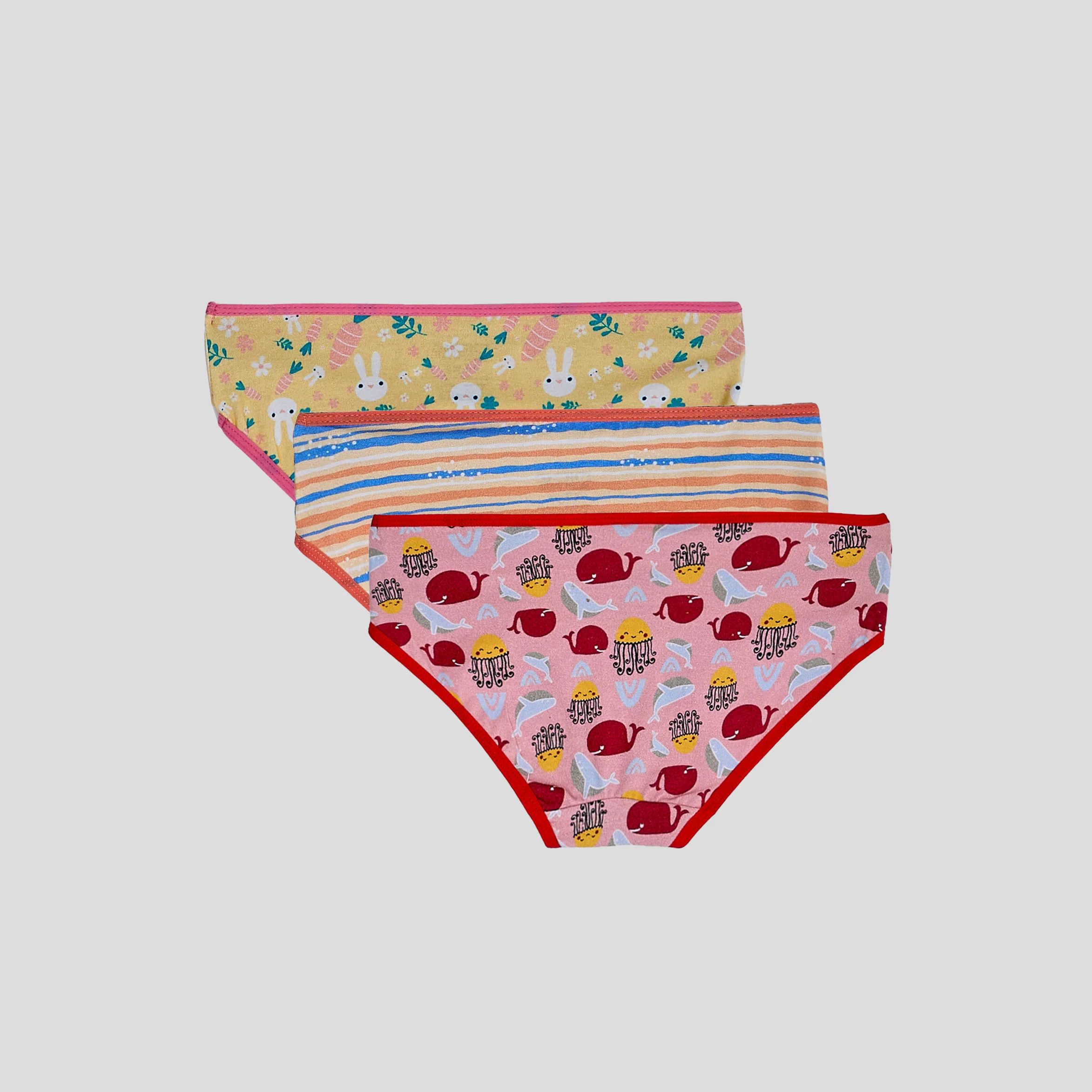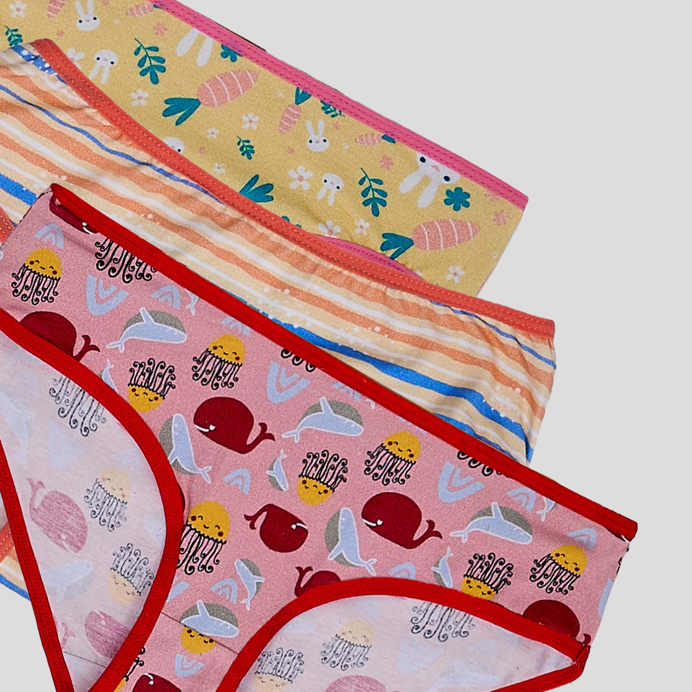 صُممت سراويل الفتيات الداخلية (عبوة من 3 قطع) لراحة تدوم طوال اليوم، وتتميز بملمس ناعم يسمح بمرور الهواء ومقاس مريح. مصنوعة من مزيج قطن مودال، توفر هذه السراويل الداخلية لمسة ناعمة على البشرة مع مرونة مثالية لسهولة الحركة. تتميز بطبعات مطبوعة بالكامل، مما يضفي لمسة مرحة وأنيقة على أساسيات الحياة اليومية.