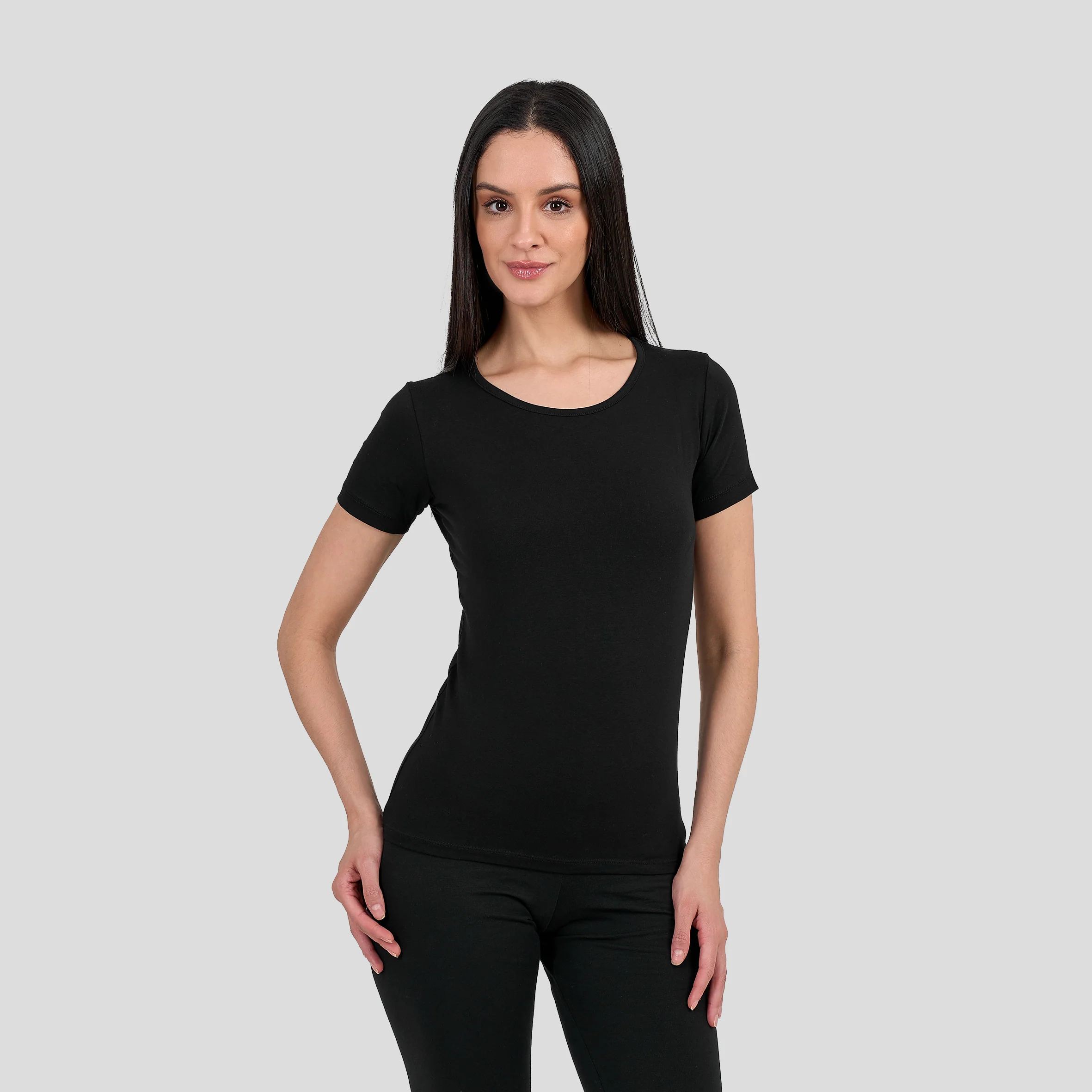 تم تصميمه لتوفير الراحة اليومية، تيشيرت نسائي بأكمام قصيرة ، ناعمة وجيدة التهوية، بتصميم خفيف الوزن ومرن. مصنوعة من مزيج قطن مودال فاخر، هذه القمصان الداخلية توفر لمسة ناعمة على البشرة مع مرونة مثالية. بألوان زاهية، مثالية للارتداء .