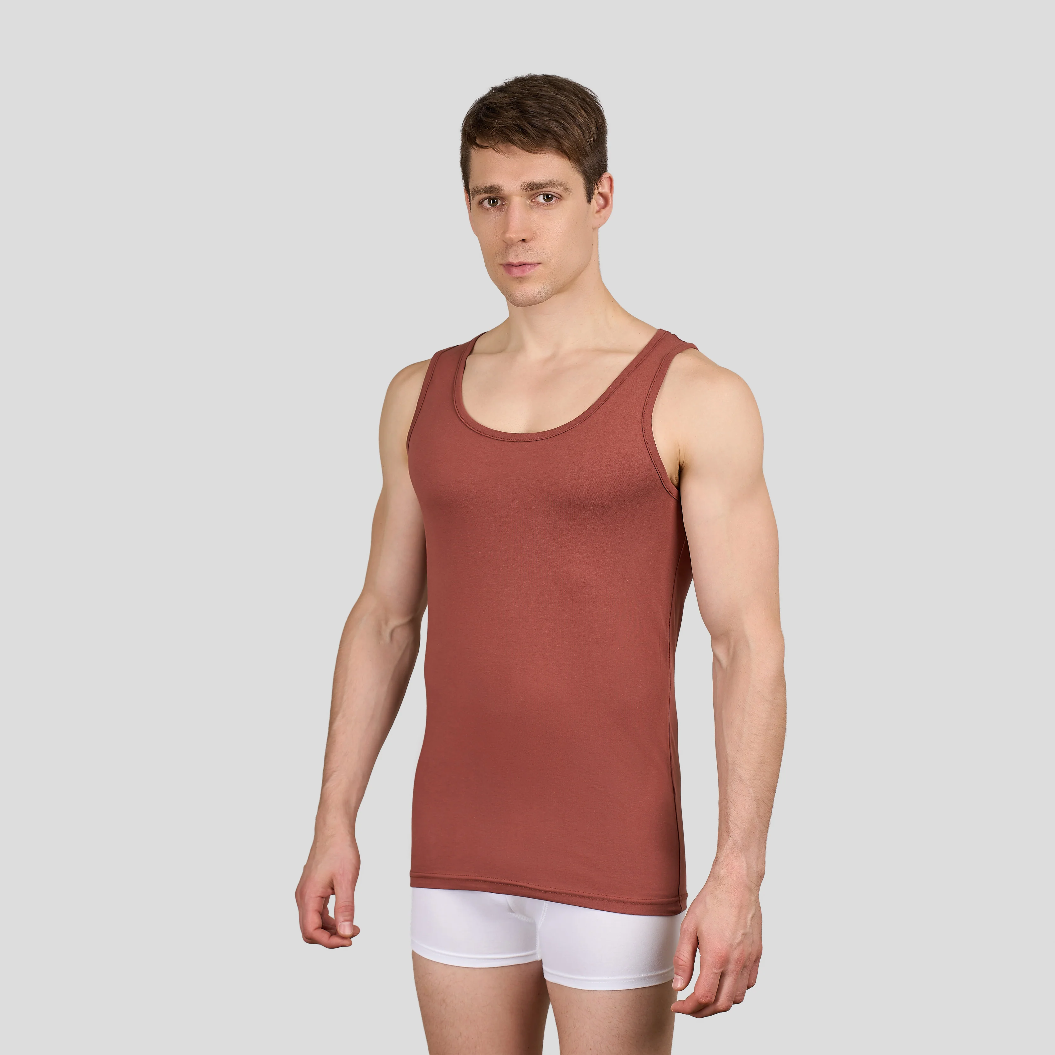 صُمم هذة الحمالة الرجالي بدون أكمام لراحة يومية فائقة، فهو يتميز بملمس ناعم وجيد التهوية، بالإضافة إلى خفة وزنه ومرونته. مصنوع من مزيج قطن مودال فاخر، يوفر هذا القميص لمسة ناعمة على البشرة مع مرونة مثالية. يتميز بألوان زاهية، مما يجعله مثاليًا للارتداء فوق ملابس أخرى.